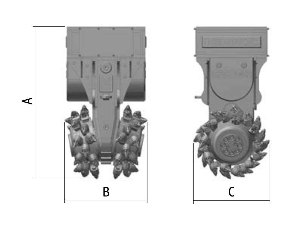 A fresadora Bullhead KRC 110 é indicada para escavadoras de 20 a 32 toneladas e tem dois tambores de corte dispostos em ângulo um em relação ao outro, de modo que os dois conjuntos de picas proporcionem uma cobertura total frontal sem qualquer lacuna entre eles, eliminando a necessidade de oscilar o cortador de um lado para o outro.