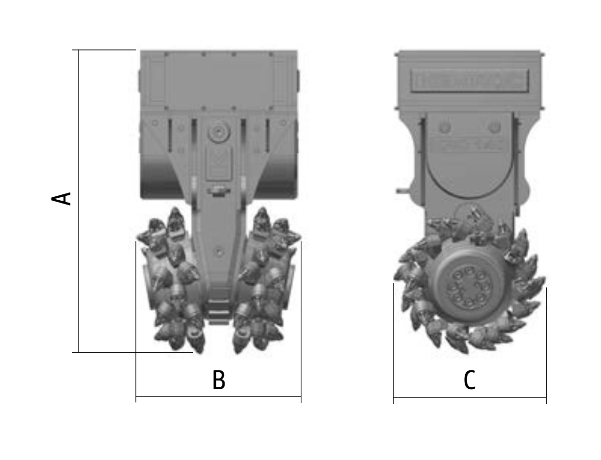 A fresadora Bullhead KRC 60 é indicada para escavadoras de 12 a 17 toneladas e tem dois tambores de corte dispostos em ângulo um em relação ao outro, de modo que os dois conjuntos de picas proporcionem uma cobertura total frontal sem qualquer lacuna entre eles, eliminando a necessidade de oscilar o cortador de um lado para o outro.