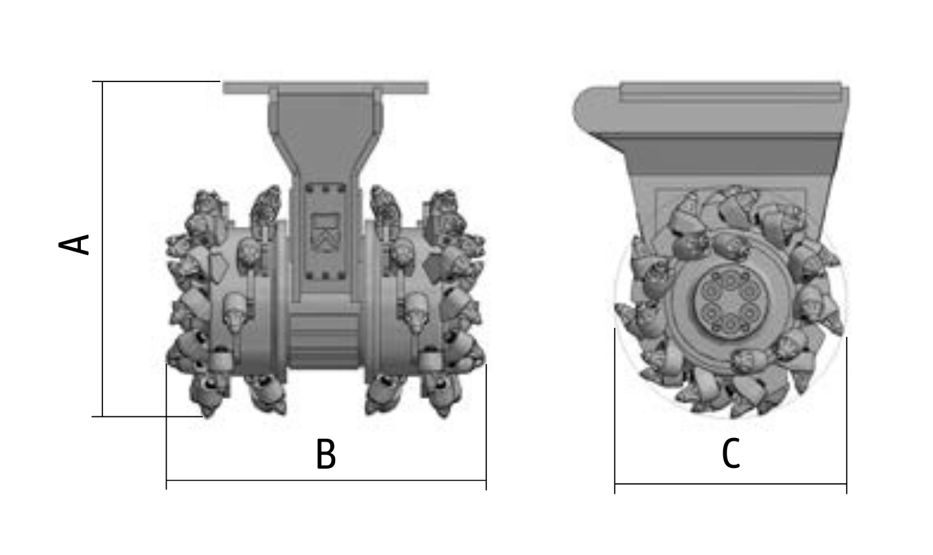 Também pode ser usada para estabilização de solo e renovação de betão. Foram usados rolamentos intencionalmente superdimensionados para suportar os tambores de corte, garantindo uma longa vida útil operacional.