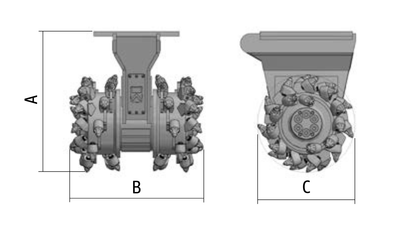 Também pode ser usada para estabilização de solo e renovação de betão. Foram usados rolamentos intencionalmente superdimensionados para suportar os tambores de corte, garantindo uma longa vida útil operacional.