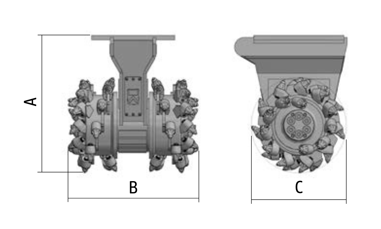 Também pode ser usada para estabilização de solo e renovação de betão. Foram usados rolamentos intencionalmente superdimensionados para suportar os tambores de corte, garantindo uma longa vida útil operacional.