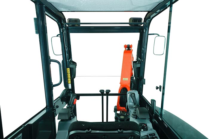 A cabine grande da KX027-4, líder na sua classe, oferece muito espaço para as pernas, excelente visibilidade e controlos intuitivos e fáceis de utilizar.