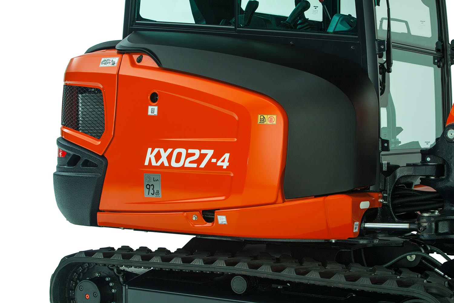 A largura compacta dos rastos da KX027-4 proporciona toda a estabilidade de que necessita para realizar o trabalho, ao mesmo tempo que é suficientemente estreita e versátil para funcionar em locais onde o espaço é limitado.
