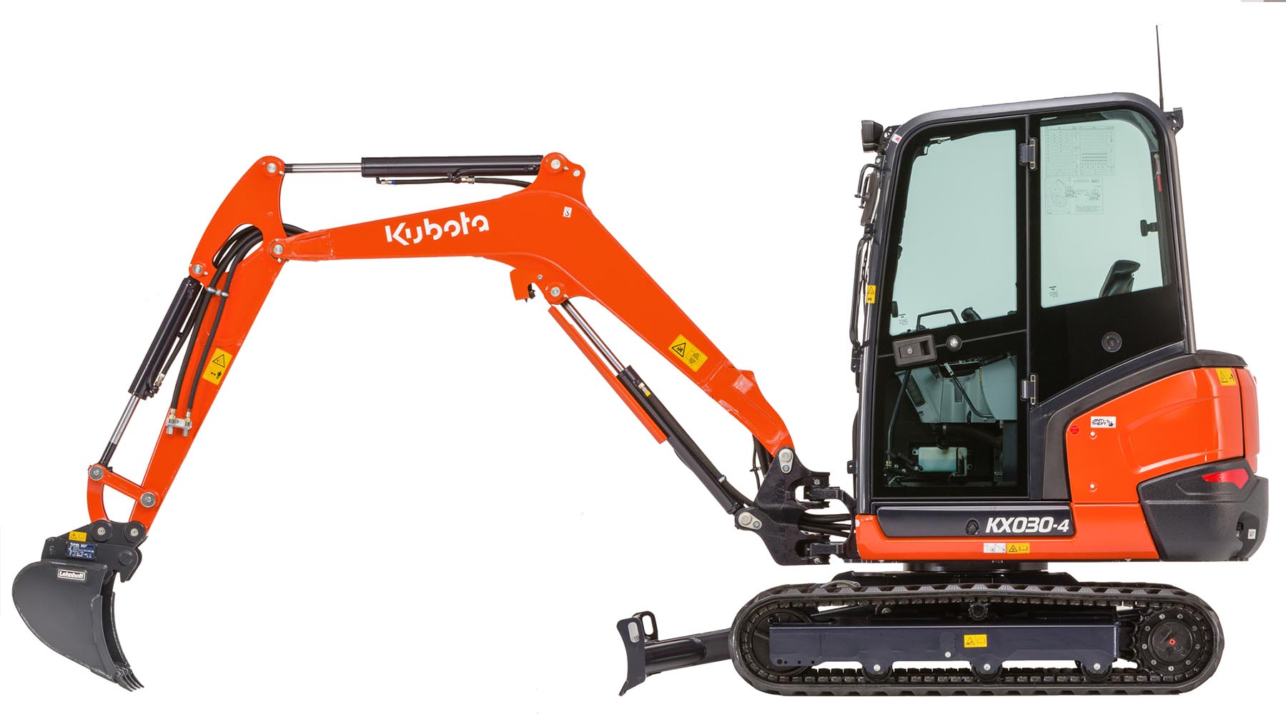 A mini-escavadora Kubota KX030‑4 de 2.7 toneladas que oferece um desempenho impressionante para o seu tamanho, permitindo trabalhar em áreas apertadas ou em condições difíceis.