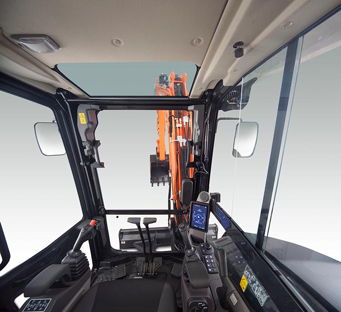 Conforto líder na sua classe e excelente visão a toda a volta com uma cabine grande e silenciosa com um banco de luxo, ar condicionado e controlos fáceis de utilizar.