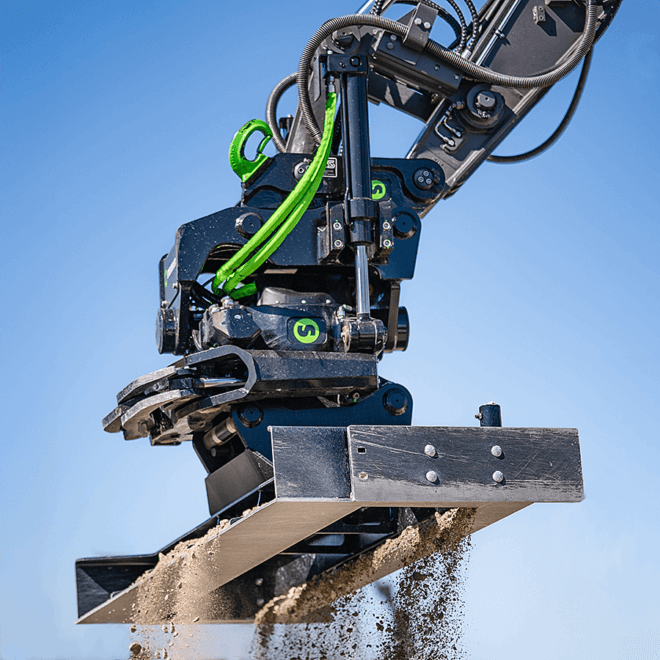 O Nivelador é uma ferramenta projetada para nivelamento e compactação de materiais em áreas amplas, quando utilizada com um Tiltrotator.