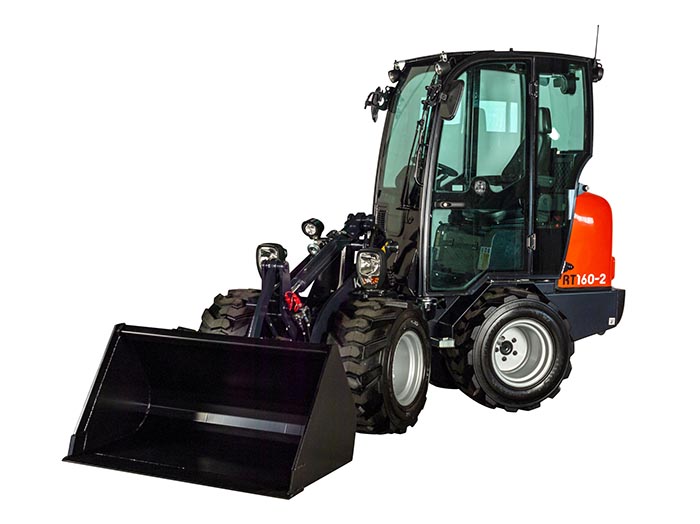 A forte e versátil pá carregadora de rodas Kubota RT160‑2 eleva cargas pesadas com facilidade, mantendo o seu tamanho compacto. Combina potência e versatilidade para garantir desempenho eficiente em qualquer operação.