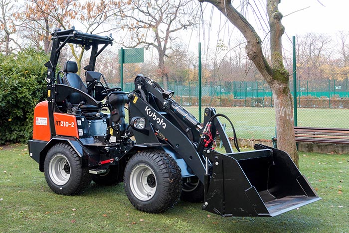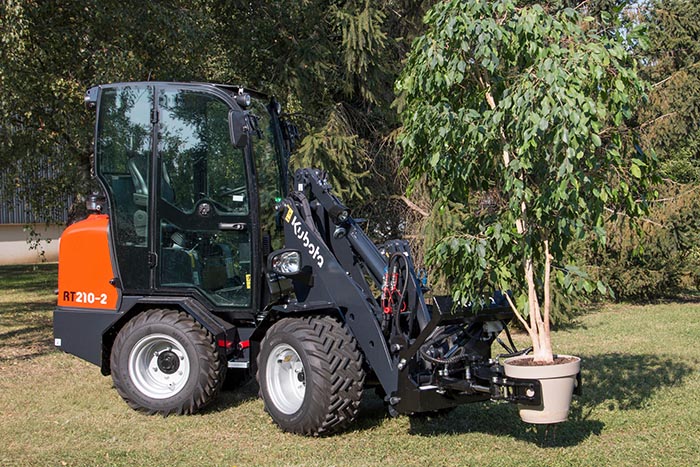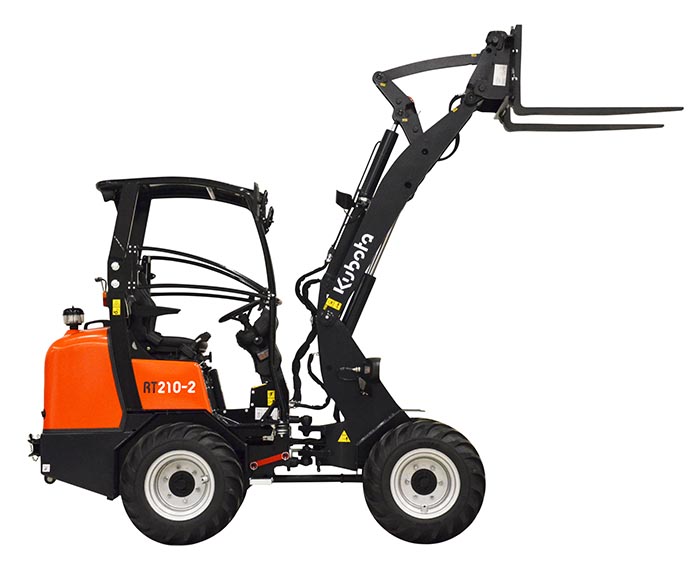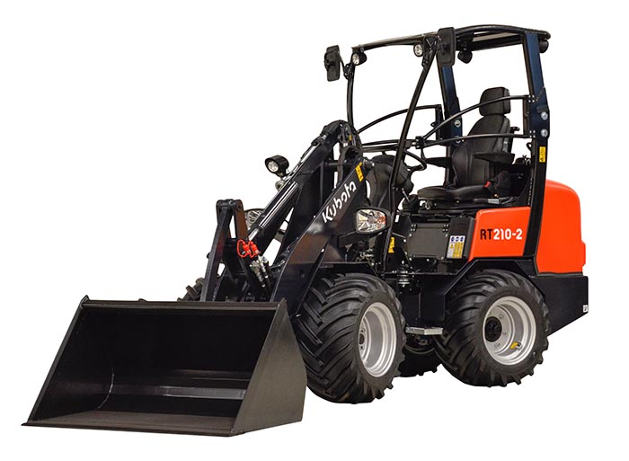 A Kubota RT210-2 é uma pá carregadora de rodas articulada versátil e compacta para trabalhos de carga elevada que exigem potência e manobrabilidade.