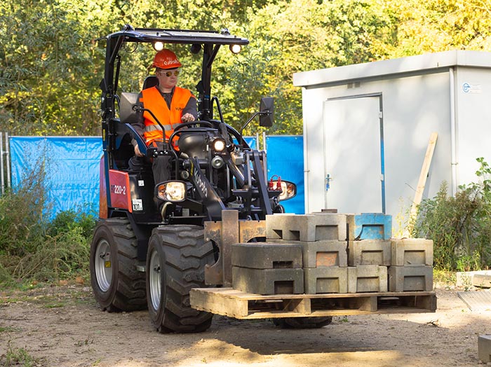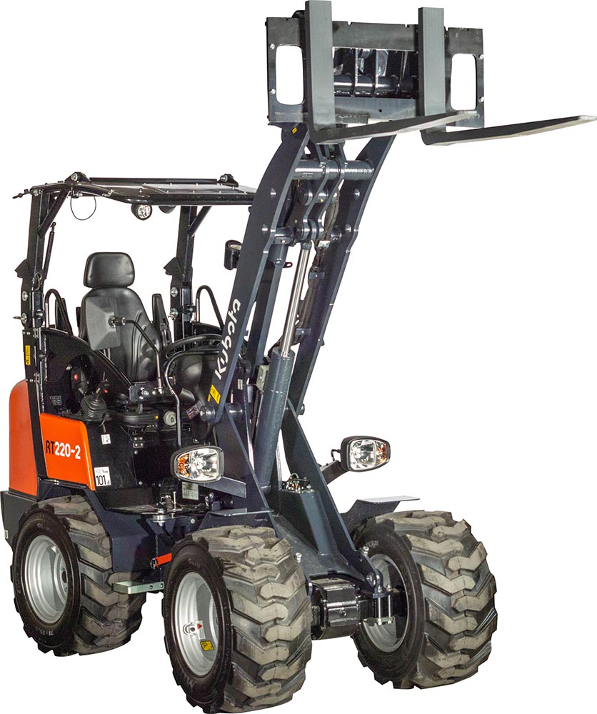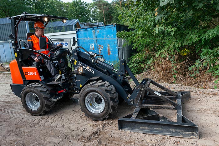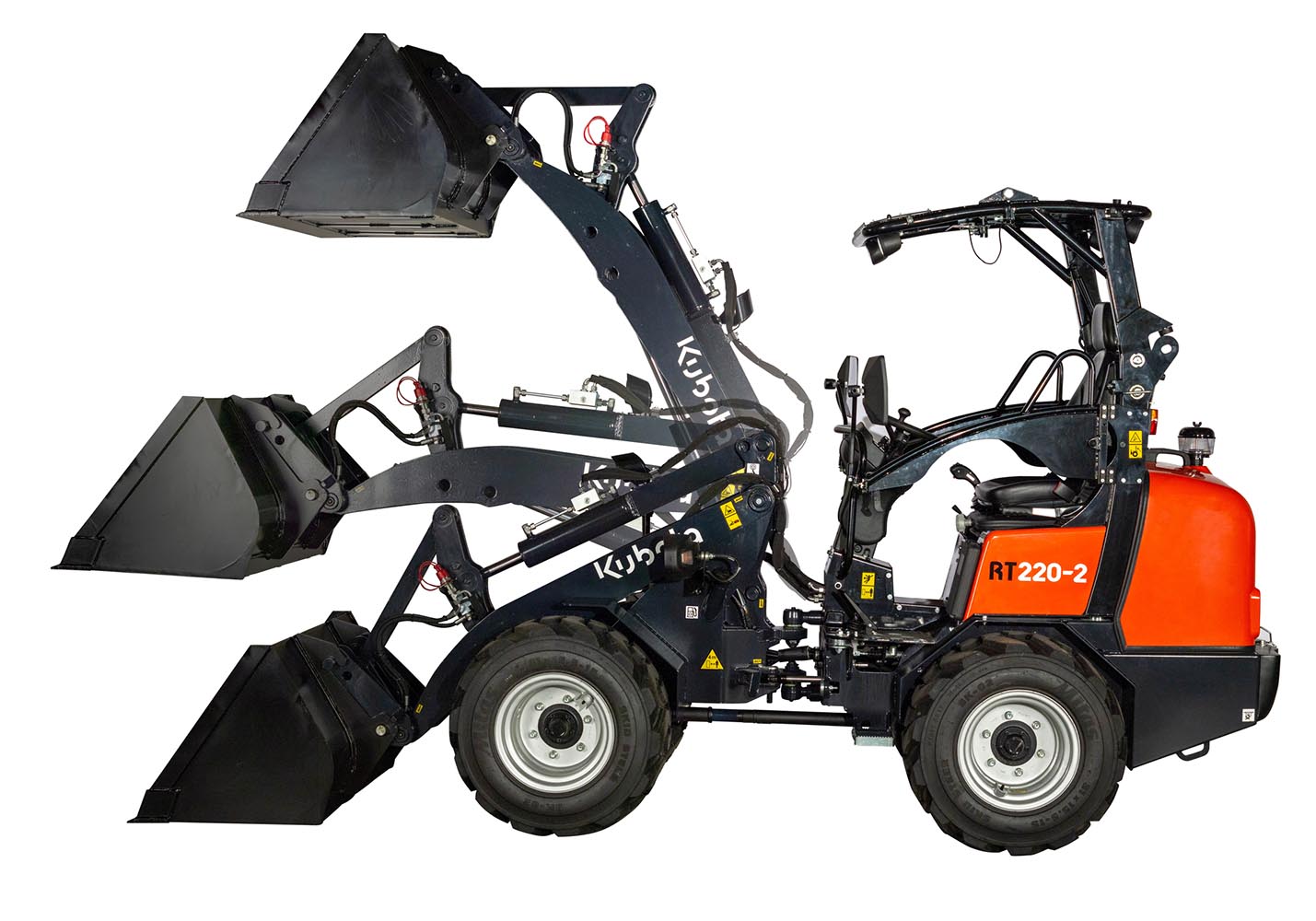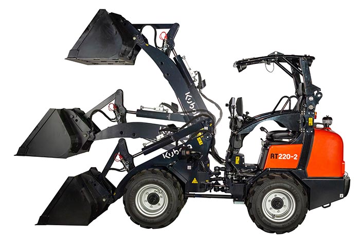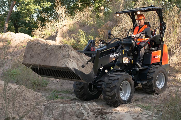 A pá carregadora de rodas Kubota RT220‑2 levanta cargas pesadas com facilidade, mantendo o seu tamanho compacto. É a máquina ideal para obras que requerem movimentação de cargas pesadas.