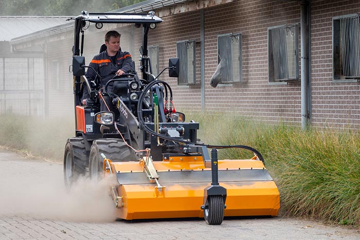 Com a sua articulação pivotante, elevada força de tração e a capacidade de carregar até 1225 kg, esta carregadora pode enfrentar uma vasta gama de tarefas de carga e terrenos.